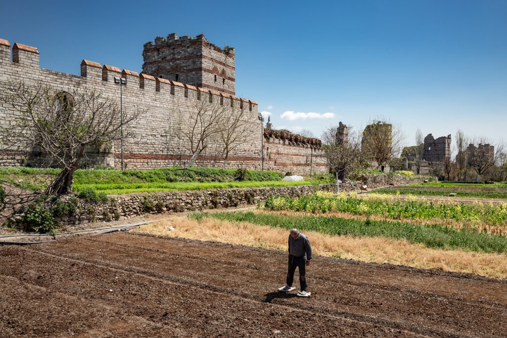 İstanbul’u yüzyıllar boyunca koruyan, bir dönemin sınırını çizen, içinde yaşayanları aynı bütünün parçası hâline getiren, kimi zaman heybetiyle orduları caydıran, kimi zaman aşılınca devletin çöktüğüne işaret eden surlar… Ve onların yanı başında, bu sert yapıyı yumuşatan, nefes aldıran, her mevsim koyu yeşiliyle adeta bir tablo gibi surların eteklerine yayılan bostanlar. Şehrin taş hafızasını toprakla buluşturan o eşsiz süreklilik.