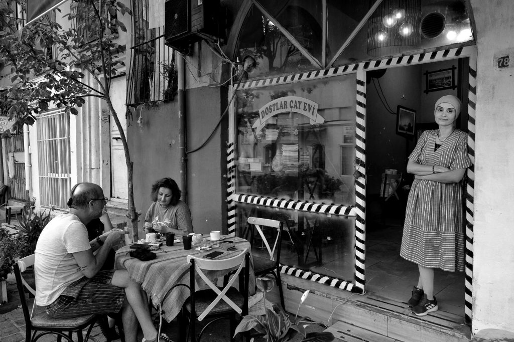 Mardinli olan Fatoş Solmuş’un çocukluğu İçkalpakçı Çıkmazı’ndaki tarihi cumbalı evlerin birinde geçmiş. Fatoş, uzun yıllar çeşitli kurumlarda aşçılık yapmış, bir süre ecza deposunda çalışmış. Son olarak Samatya’nın Marmara Caddesi’nde açmış olduğu kahvesini işletiyor. İşyeri, semtte vakit geçiren sakinlerin özellikle de kadınların uğrak mekanı. Fatoş, Kadınlar Kıraathanesi açmasında yatan nedenleri şöyle dile getiriyor: “Erkeklerin hakim olduğu ve kadınların mahalle içerisinde çok da vakit geçirecekleri bir alan olmamasının eksikliğini fark ettim. Ben de kadınların evinin sokağında, yakınında olan bir Kadınlar Kıraathanesi açmak istedim.” (01.09.2024)