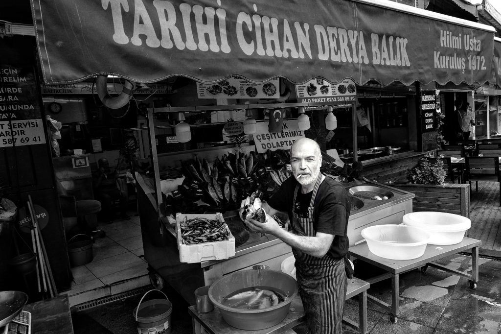 Meydan’ın tren istasyonundaki girişinde yer alan Tarihi Cihan Derya Balıkçısı geleneksel olarak balıkçılık işini yapan tek yerdir. Hemen karşısında ve birkaç adım ötesinde yer alan dükkanlarda ise daha çok yemek yeme üzerine kurulu bir işletme anlayışı vardır. 62 yaşında olan ve 47 yıldır balıkçılık yapan Hilmi Yıldız Turizm piyasacılığından yakınıyor: “Garibanın yiyeceği balıktı. Burası kasap, manav ve berberin olduğu bir çarşıydı. Şener Şen ile Türkan Şoray’ın dizisi olan İkinci Bahar’la birlikte burası değişti.” (31.08.2024)