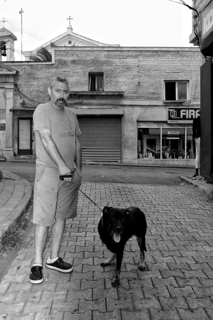 Orhan ve dostu. Apartmandan düşmesi sonucu bir bacağını kaybeden köpeğini her gün gezintiye çıkarır. Esnaftır.