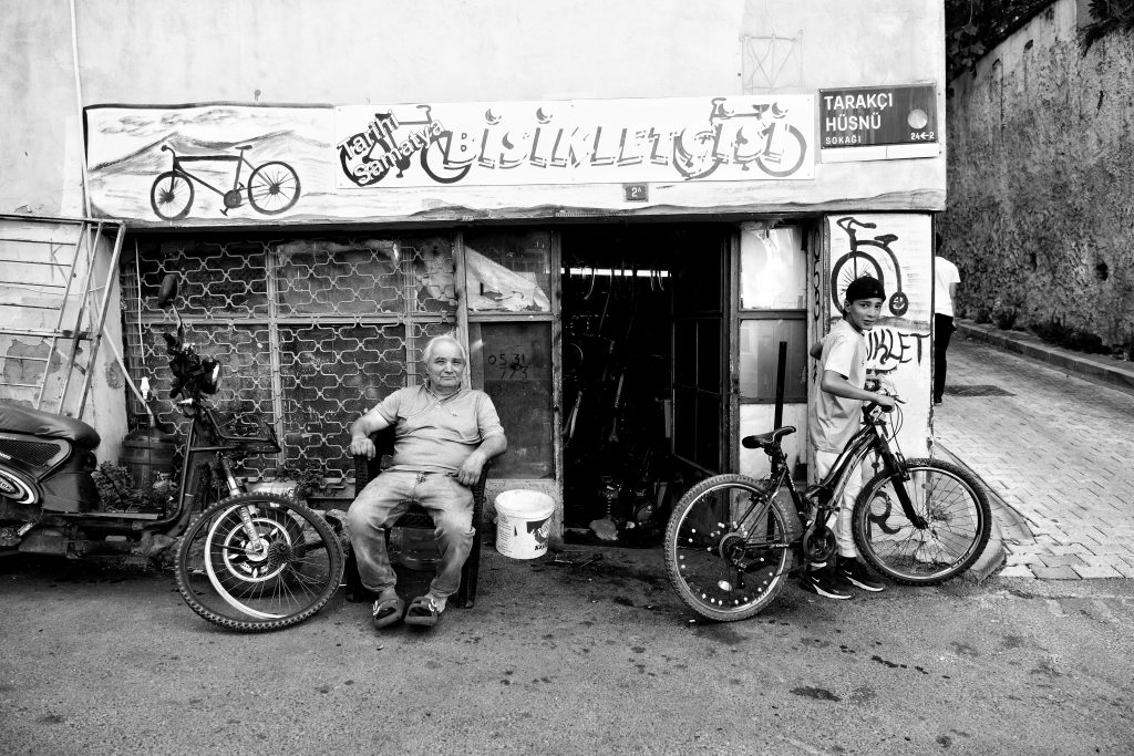 Samatya’da eski hizmetler de devam etmeyi sürdürüyor. Bunlardan birisi de bisiklet tamirciliği. Ceyhun Heriş, semtin sokak arası bisikletçisi. Tamir ettiği ilk bisikletlere binen çocuklar şimdilerde 45 yaşın üzerinde. Heriş 72 yıllık hayatının 40 yılında bu işi yapmakta. Çocukların halen bisikletlerini yenilemek veya değiştirmek için uğradığı bir mekan. Geçmiş Samtaya’ya dair çok anı biriktirmiş olan Heriş yaşanan dönüşümü “Burada eskiden ahşap ve cumbalı evler vardı , şimdi ise her şey çok değişti. Bu evler birer birer yok oldu gitti” ifadeleriyle anlatıyor. Ceyhun Heriş, Samatya’nın göçmenlerin yoğun yaşadığı yerlerden birisi haline gelmesiyle birlikte hissetiklerini şöyle açıklıyor: “Ülkede çok yabancı var. Onlar yüzünden ben burada yabancı durumundayım artık. Eskiden 1970’ten önce paskalya yapılırdı, meydanda toplaşır boyalı yumurtalar kırılırdı, paskalya çörekleri dağıtılırdı. Çarşıydı bu meydan. Sepette çiroz satılırdı, yoğurt elle satılırdı. Göçlerden dolayı değişti her şey.” (10.08.2024)